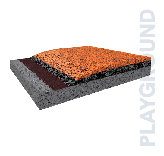 Solução integra uma base elástica de borracha reciclada que garante amortecimento e estabilidade, combinada a um revestimento superior de EPDM colorido ou granulado SBR, fundido por resinas de alta durabilidade.